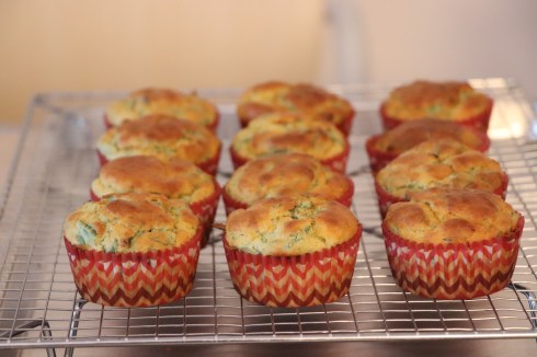 Den Teig etwa 3/4 hoch in die Muffinförmchen fühlen und ca. 20 Minuten backen, bis Muffins goldbraun aufgehen. Muffins herausnehmen und auf einem Gitterost abkühlen lassen.