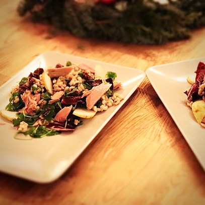 Zutaten für 4 Personen: Graupen ca. 250 g, 2 TL Fenchelsamen, 60 ml Olivenöl, 1 Radicchio (schmeckt bitter!), 2 EL Cherry Essig, 1 EL Dijon Senf, 1 Birne, Baby Rucola 100g, Thunfische in Öl guter Qualität ca. 200 g, Salz aus der Mühle.