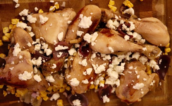 Servieren: Auf dem Mais Hähnchen legen und mit Fetta Krümel ca. 70 g bestreuen. Nicht Vergessen die Sauce aus der Pfanne zu den Gericht auf den Tellern geben!
